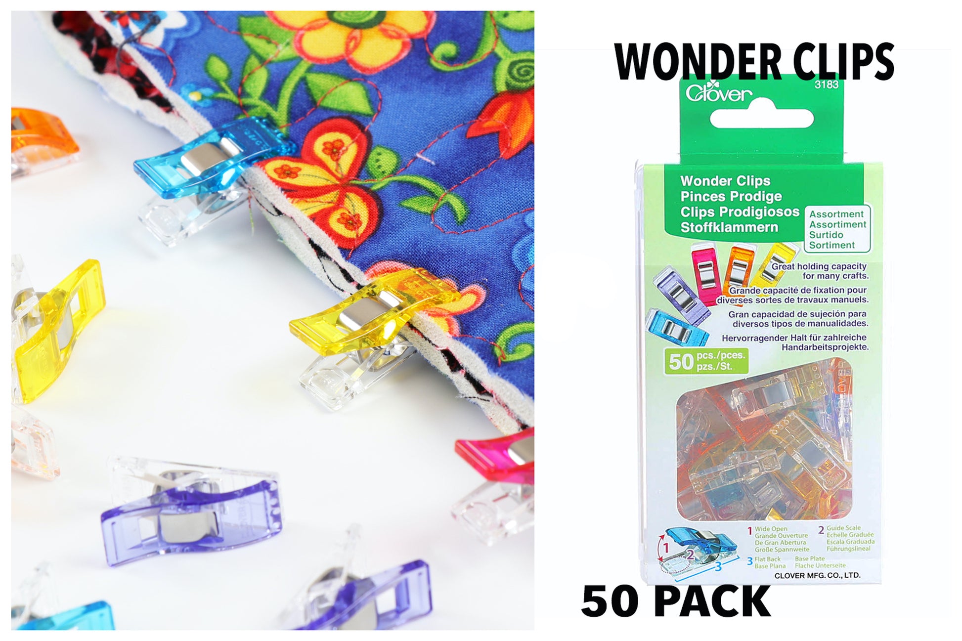 ON SALE 5% OFF 50PACK Wonder Clips by Clover. Great Sewing Tool & assortment of colors. Since their introduction primarily for seam binding on quilts, they have been adopted by crafters, beaders, scrapbookers, card makers and every craft where a third hand is needed to hold something down, together or in place. They make a great gift for any crafter or home sewer.