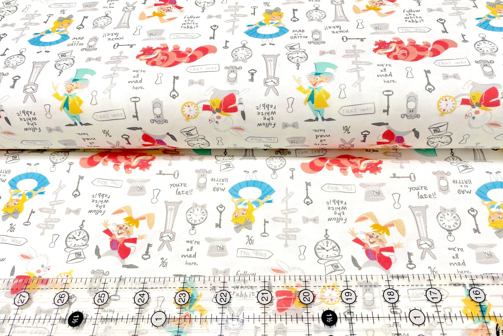 ONSALE 10% OFF! Alice In Wonderland Disney Fabric Licensed Camelot 100% Quilt Cotton 44" Wide in (white background).