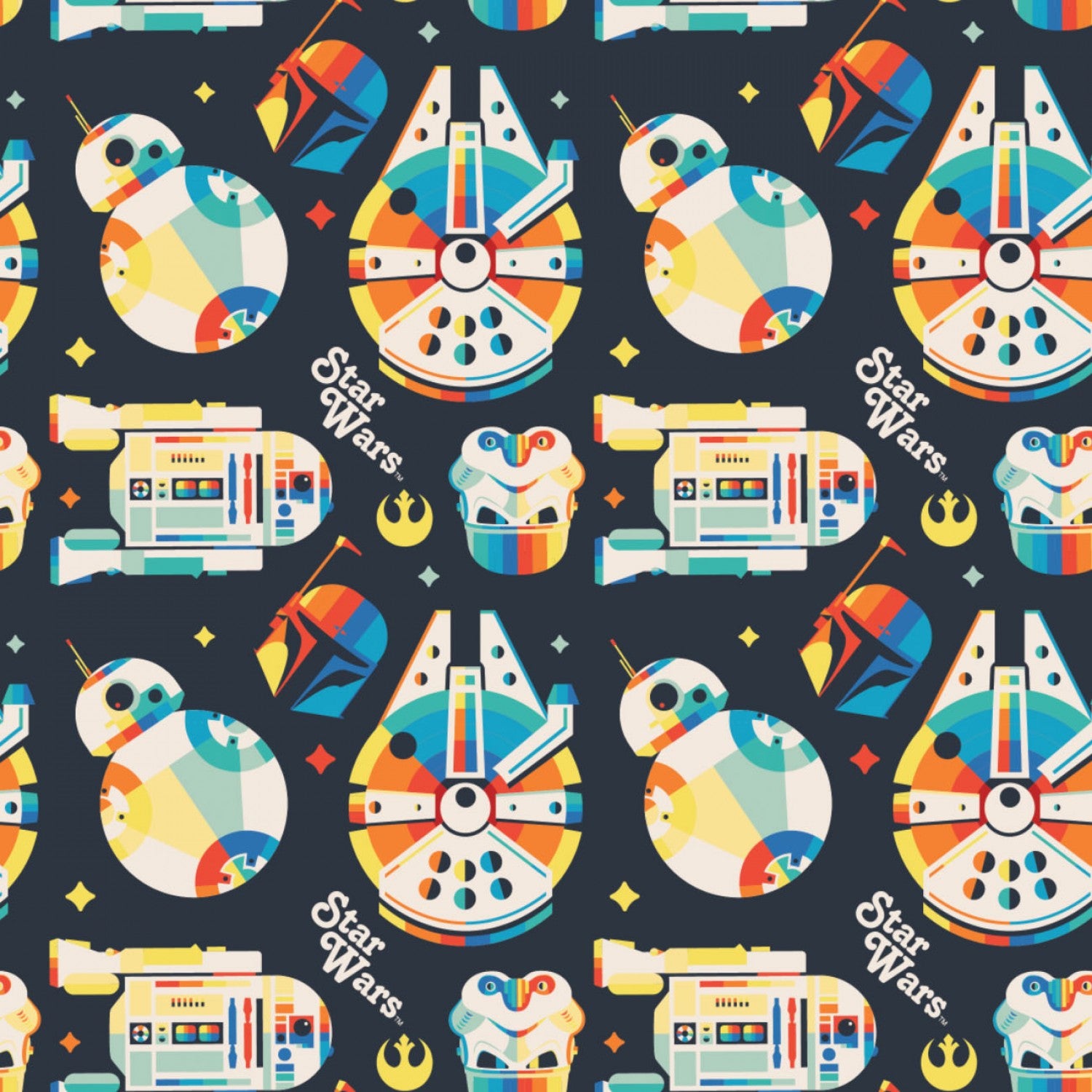 Star Wars Fabric BB8 R2D2 Robot Storm Trooper & Millennium Falcon Licensed Fabric Camelot Disney 100% Quilt Cotton